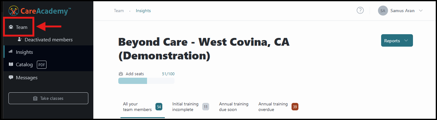 To begin, navigate to the Team tab on your dashboard.