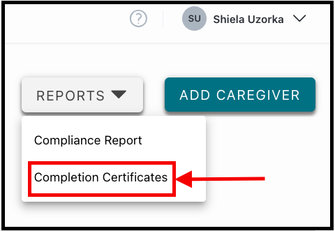 Note: These are the instructions for how to view the completion certificates earned at the organization-wide level. It is also possible to view the completion certificates earned by a specific team member.